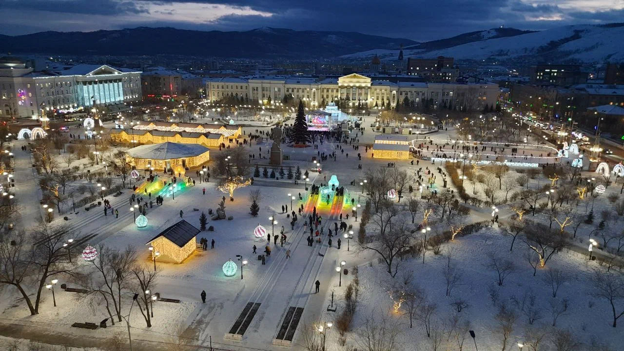 Ледовый городок открыли на площади Ленина в Чите: новогодние чудеса и дымковская игрушка