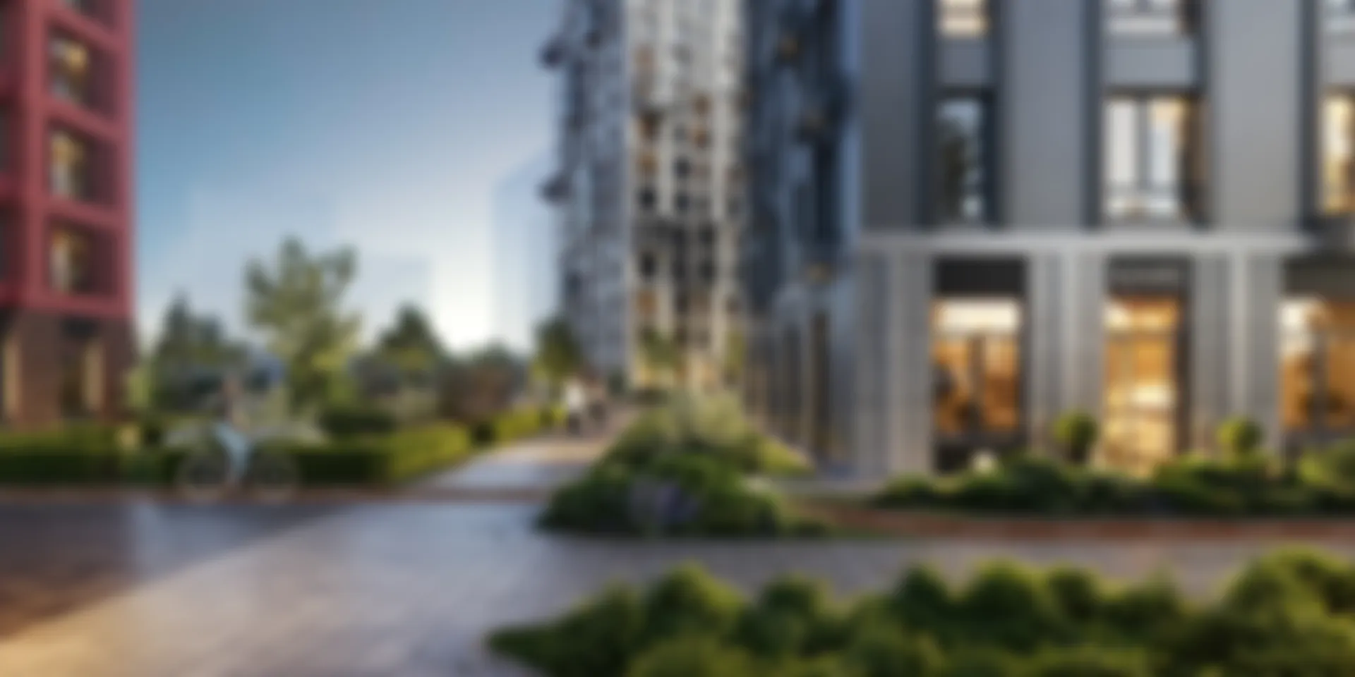 Фасады корпусов в монохромных оттенках с красными акцентами будут выглядеть так естественно, как будто всегда возвышались над этой рекой.